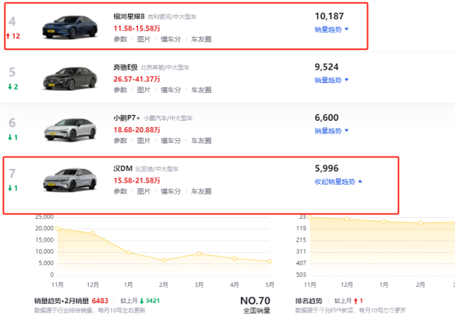 而且从最近公布的5月份销量成绩来看,于5月9日正式上市的吉利银河星耀8,已经交付了10187台新车,在中大型轿车排行榜中名列第四。反观比亚迪汉DM,该车型的5月份销量仅有5996台,比4月份还要低,显然被银河星耀8夺走了不少份额。所以说到这里,接下来我们就以星耀8为例,看看它到底有哪些优势。